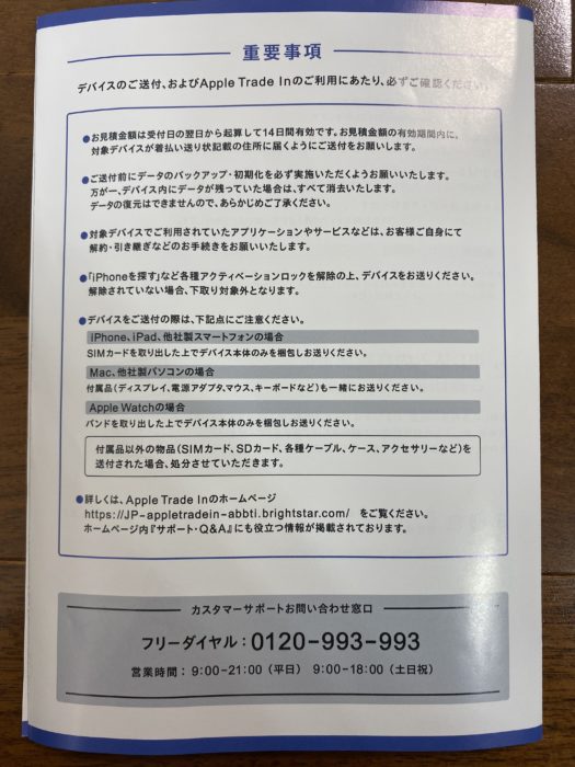 あと、発送する前に必ずiPhoneの初期化等の必要事項を実施すること忘れないようにしてくださいね。