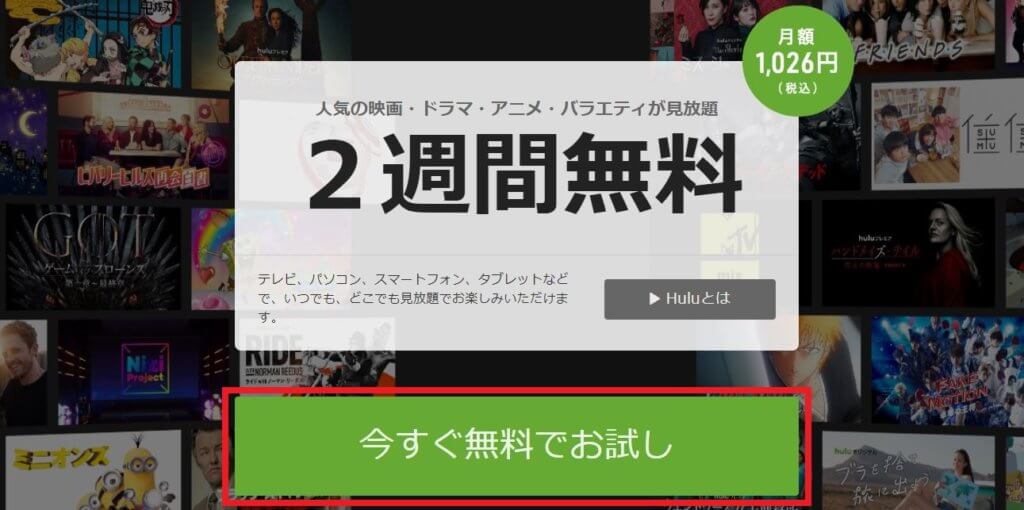 Hulu(フールー)に少しでも興味を持たれた方は、まずは2週間無料トライアルで気軽にお試し体験して、利用方法や配信されている動画を確認してみてください。