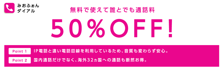 IIJmioが提供しているみおふぉんダイヤルを利用すると、通話料が50%OFFになるのでお得です。