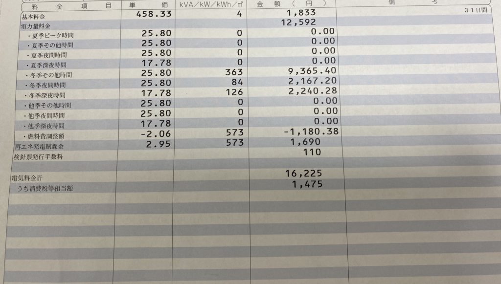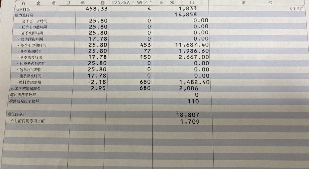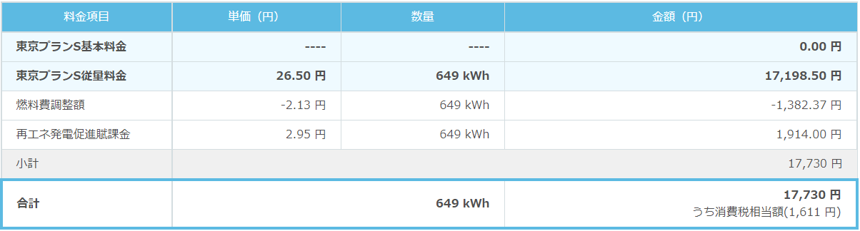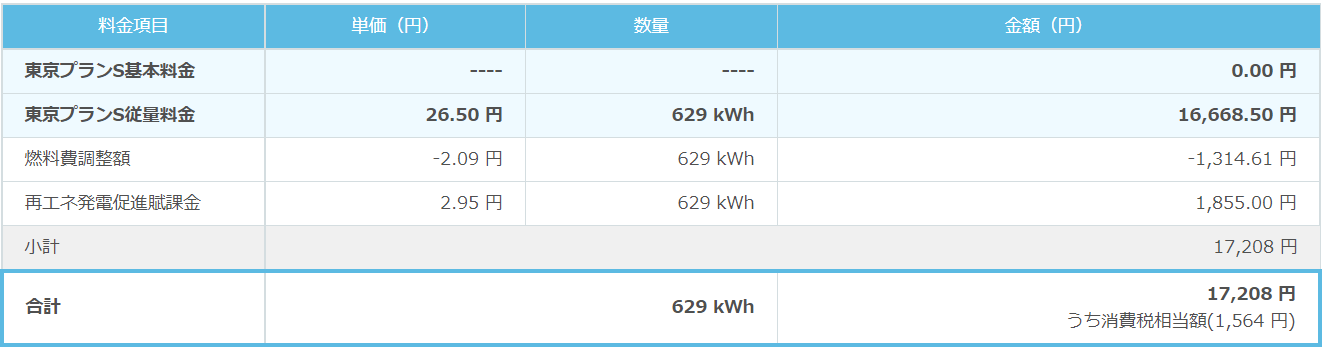 東京電力のほとんどのプランは基本料金がかかるようになっています。後述に実際の利用明細がありますが、この基本料金が意外と高いです。