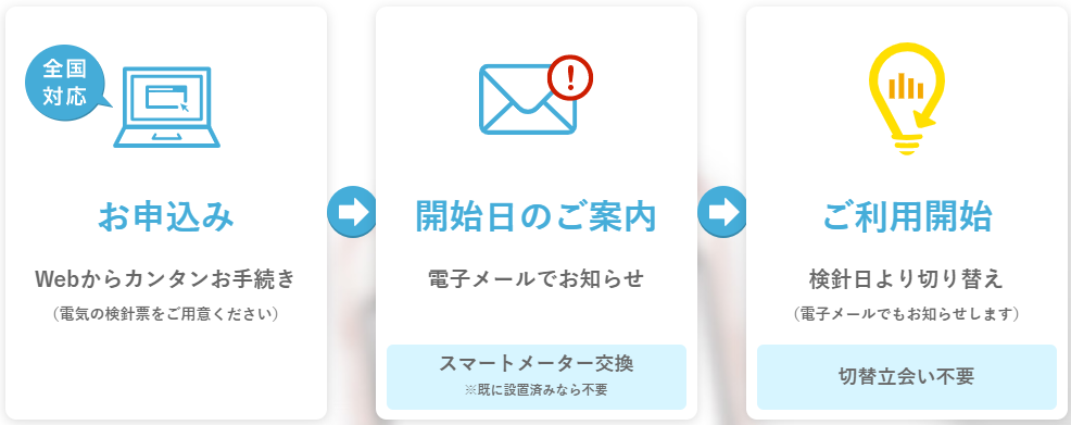 手続きもWEB上で簡単にでき、現在契約している電力会社の解約手続きも自動で行われるので、WEB申請だけで他は何もしなくて大丈夫です。
