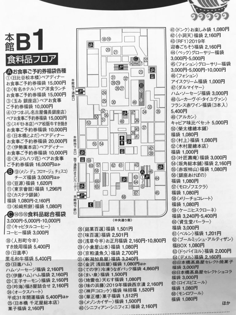 まなこ前日に公式HPで各店舗の福袋販売情報を確認しておき、当日こちらの配布MAPで狙いの福袋が販売される位置を確認。無駄なくゲットしていきましょう♪