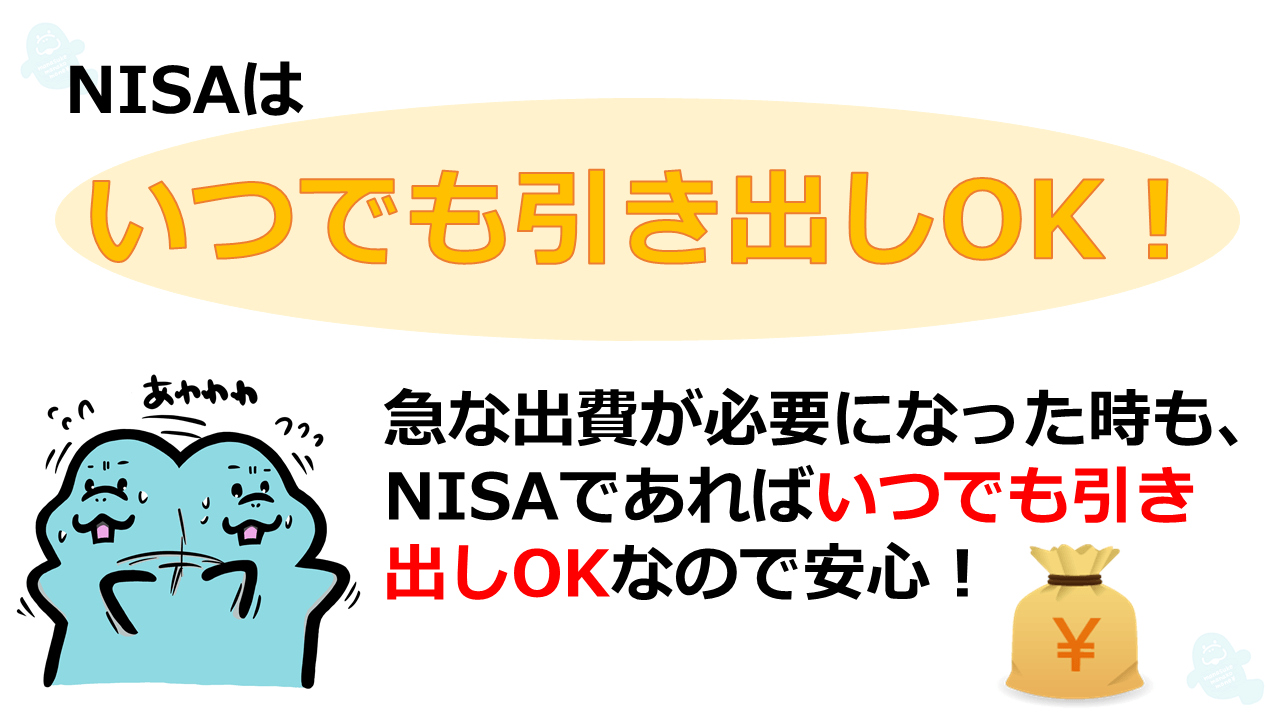 iDeCoは途中引き出しすることができないので、急な出費が必要な時に困ってしまいますが、NISAではその心配がないので安心して投資することができますね。