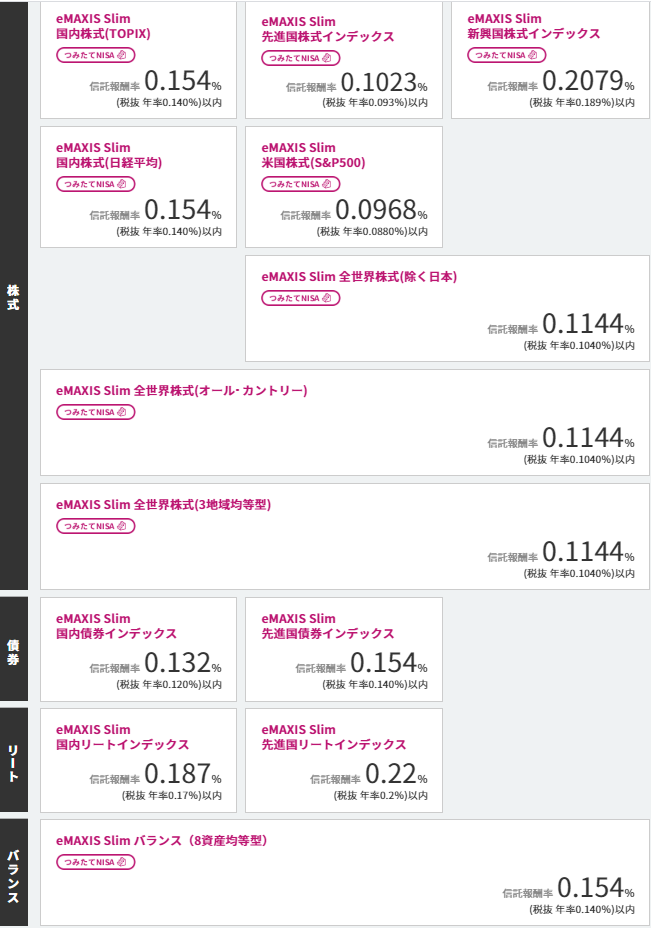 つみたてNISAでおすすめする商品は「eMAXIS Slimシリーズ」。