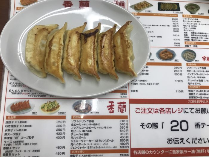 - まなこ的NO1は厚めの皮の「香蘭」の餃子