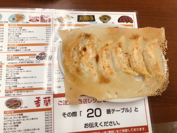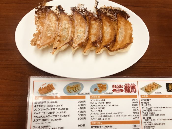 龍門焼餃子(1人前6個)290円。